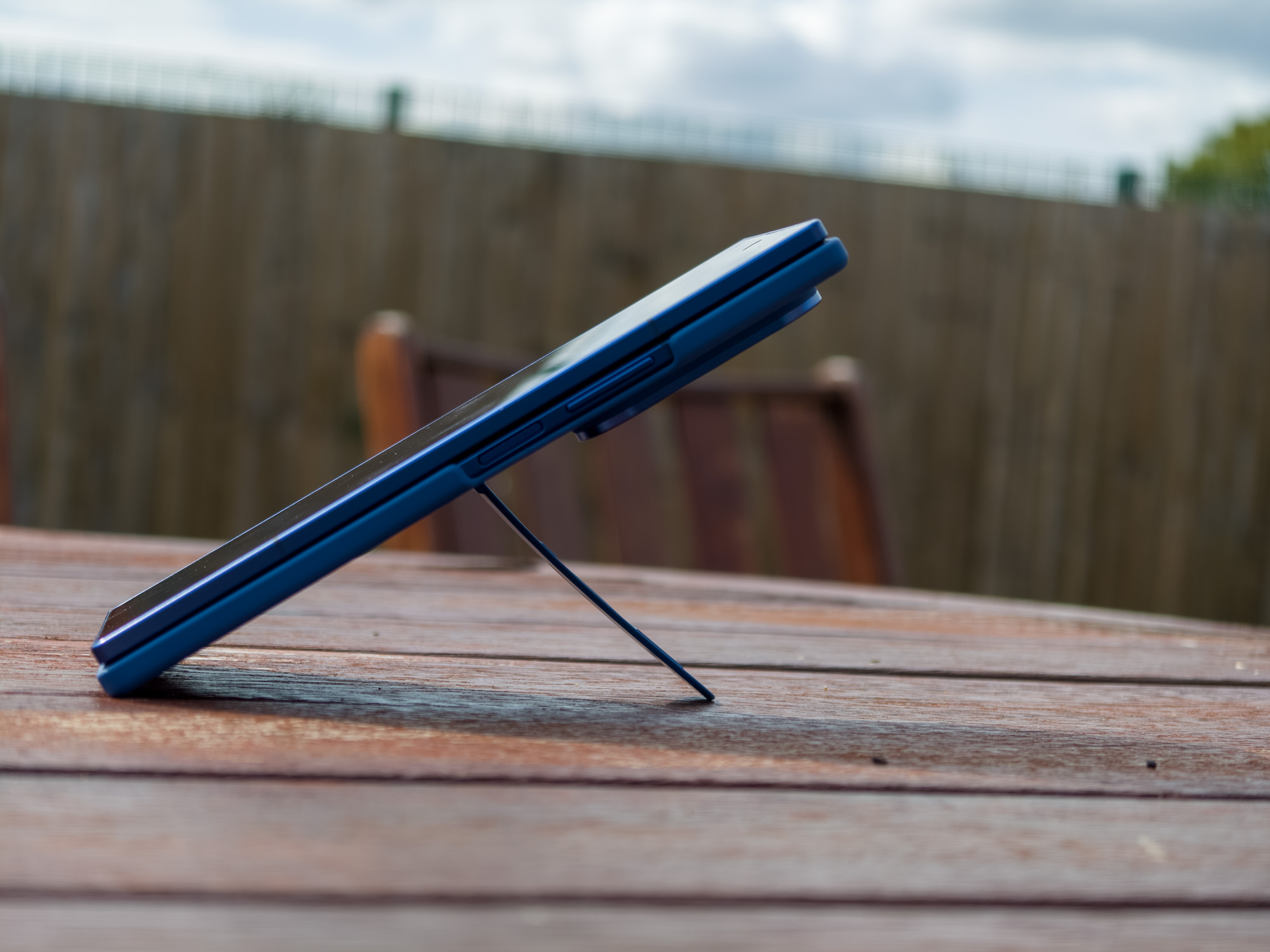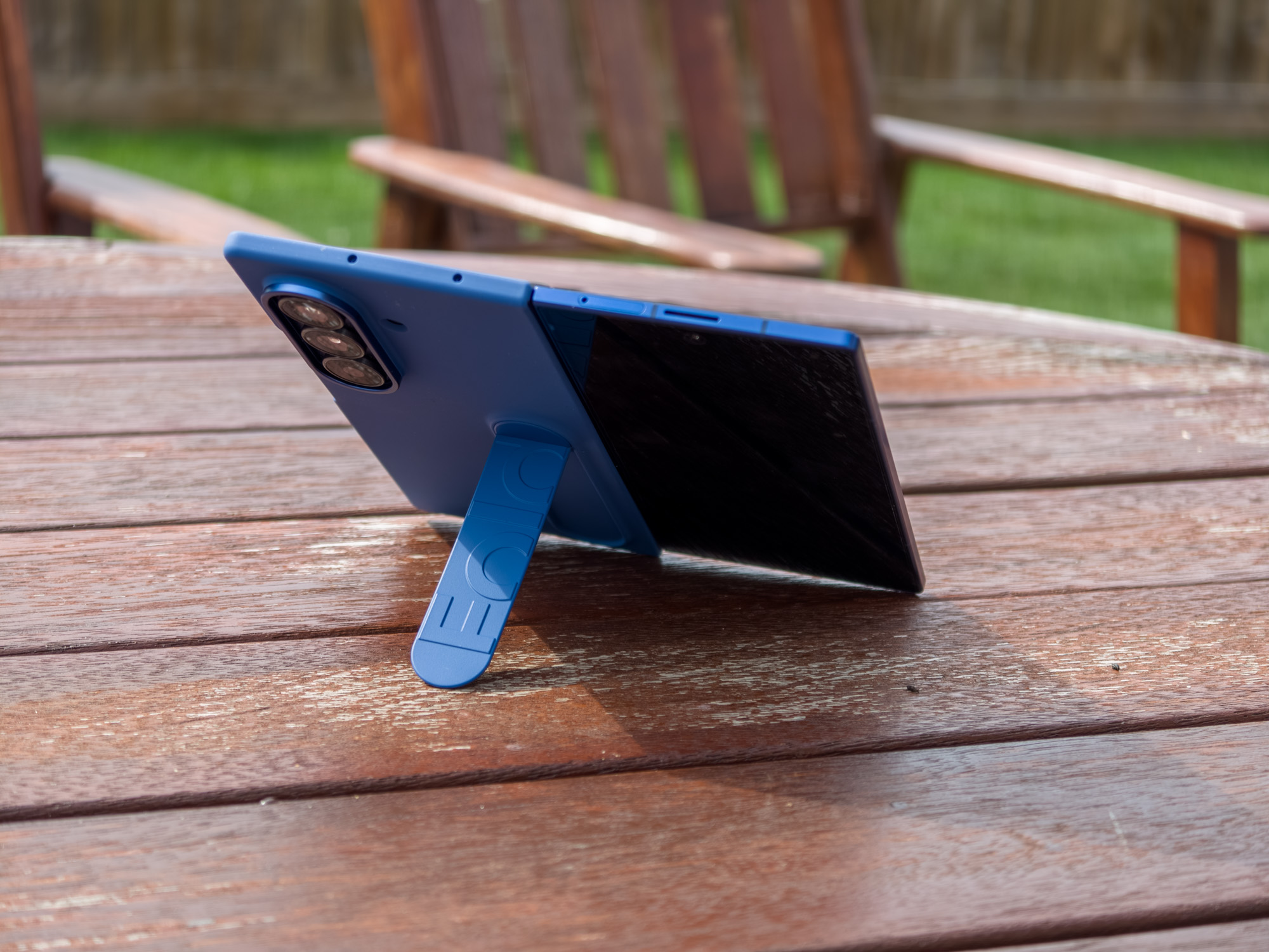 Tout d'abord, il y a l'oscillation susmentionnée. La béquille ne résout pas entièrement ce problème, car il y a encore une légère oscillation, mais elle le réduit considérablement. Je pense que Samsung aurait dû ajouter quelque chose de purement décoratif aux autres cas pour résoudre ce problème, mais peut-être qu'ils le feront l'année prochaine.