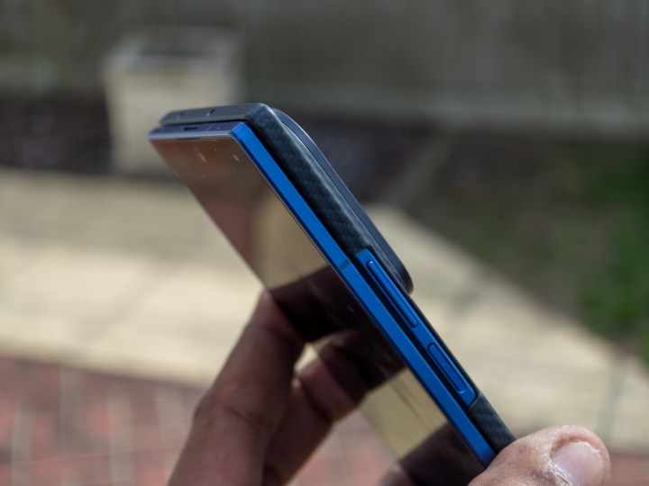 Je suis particulièrement frappé par cette affaire car il semble premium et convient à la conception du Galaxy Z Fold 7, les deux qualités que vous attendez de l'affaire officielle du héros. Il ne semble pas attirer autant d'empreintes digitales que le boîtier des fibres aramides. Cependant, il semble toujours assez susceptible de ramasser des huiles et des marques, une caractéristique commune de tous les cas de fibre de carbone.
